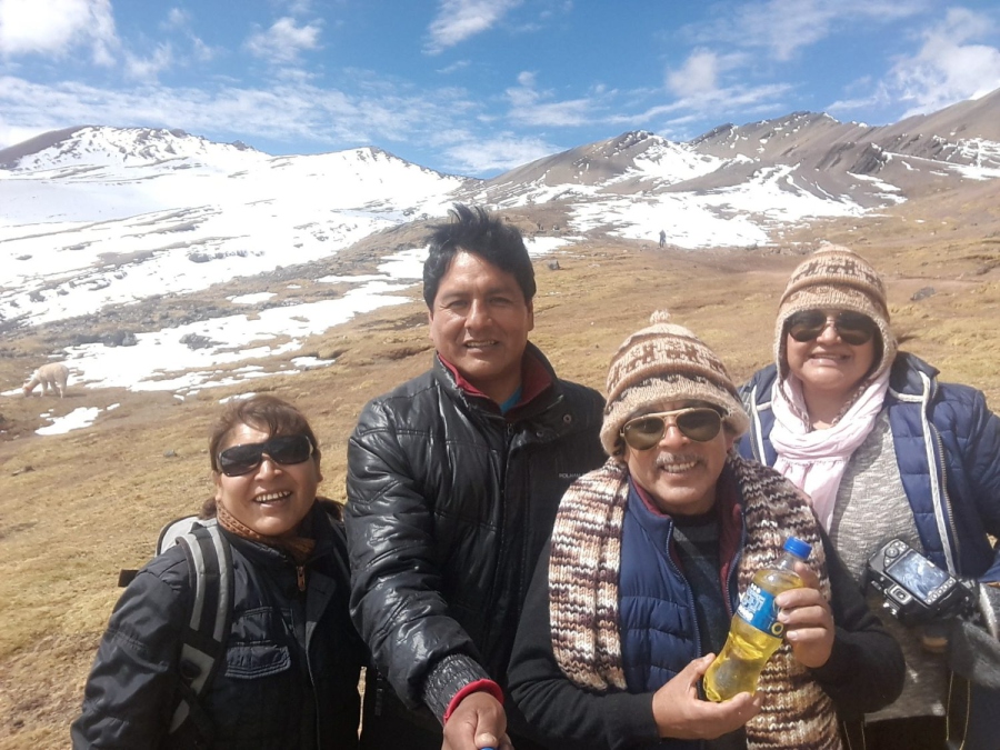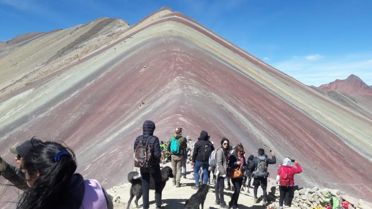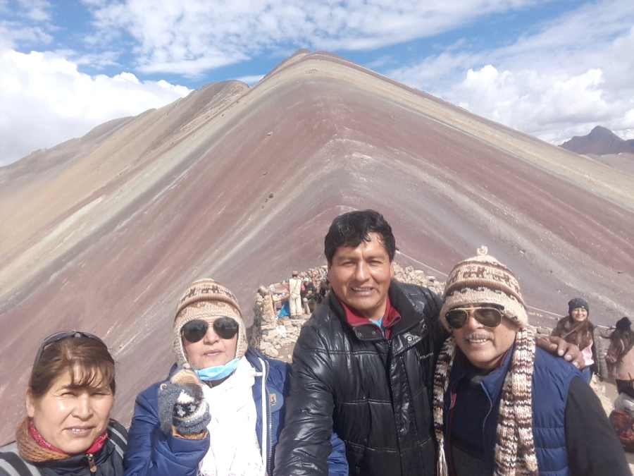 The adventure begins at 4:30 am. With pick-up from your different hotels, and then we begin the trip to the south side of the city of Cusco, a 6-hour round trip by bus from Cusco – Cusipata / Car Parking / Cusipata – Cusco. Our trip is to a small town of CUSIPATA, 2 hours from Cusco, where we will enjoy a delicious typical breakfast, and then we will board our bus, again for 1 more hour to reach the car parking, then we will begin the 4 km walk for 3 hours round trip, uphill to reach the Rainbow Mountain, Cerro Apu Winicunca at 5,036 meters above sea level. Top of the mysterious Rainbow Mountain. From this point, we can also appreciate the sacred snow-capped mountain of APU AUSANGATE, known since the time of the Incas, and the mysterious Red Mountain. This is where we will take time to take videos and photographs, to remember the beautiful landscapes and multicolored mountains. Then, we will begin our descent to the parking lot. We will begin our return trip and stop about an hour later in the small town of Cusipata for our delicious and restorative buffet lunch. Then, we will board our bus that will take us back to Cusco, arriving at approximately 5:30 p.m.